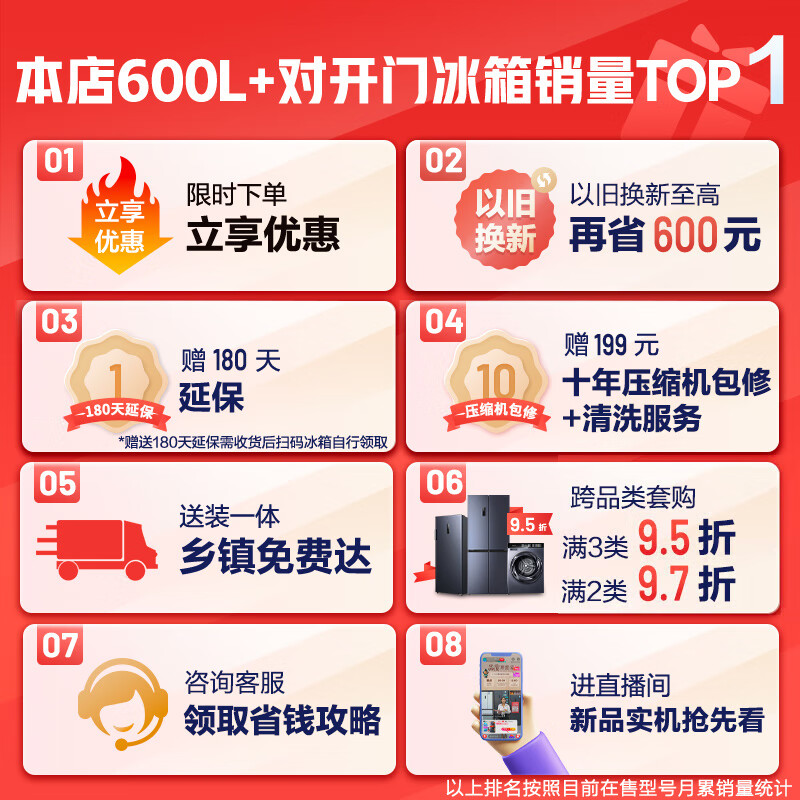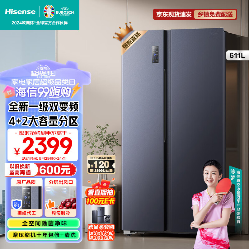 海信(Hisense)电冰箱双开门家用超薄无霜冰箱一级能效超大容量611L变频除菌净味BCD-611WFK1DPQ价格:2599.00元!
