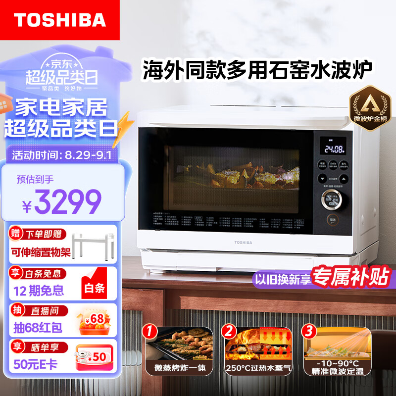 东芝XD95CNW微蒸烤炸一体机水波炉家用台式变频微波炉电烤箱空气炸蒸箱平板隐藏烤管白色26L价格:3299.00元!
