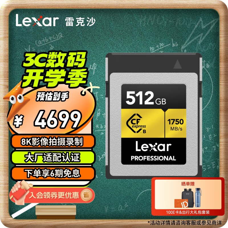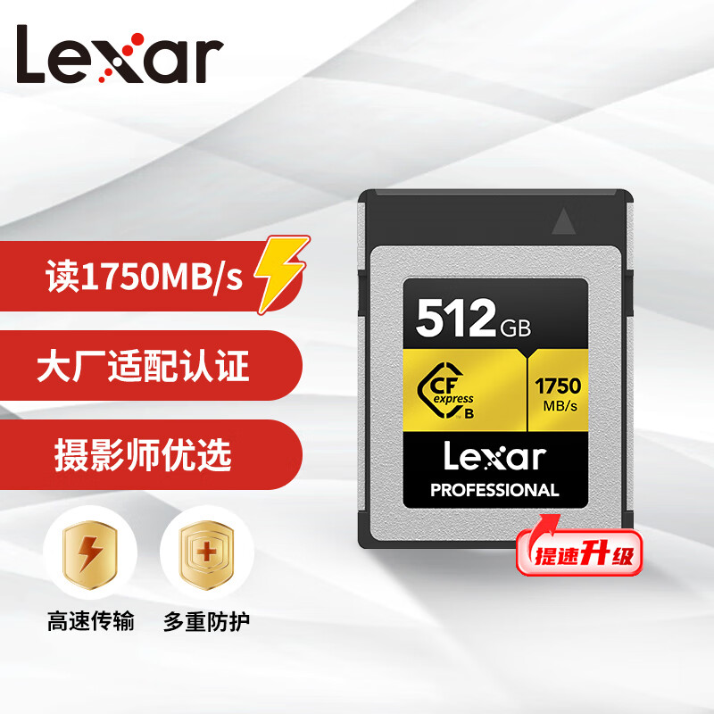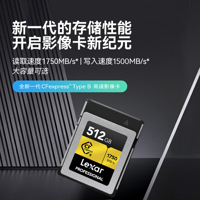 雷克沙(Lexar)512GB CFexpress Type B存储卡 读1750MB/s 富士佳能尼康原厂推荐 8K录制 cfe内存卡(GOLD)价格:4699.00元!