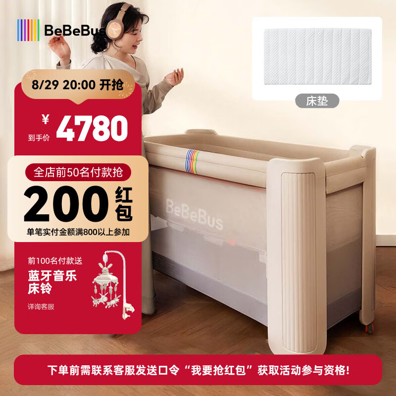 bebebus婴儿拼接大筑梦家新生儿多功能便携移动折叠宝宝床 香槟金+床垫价格:5080.00元!