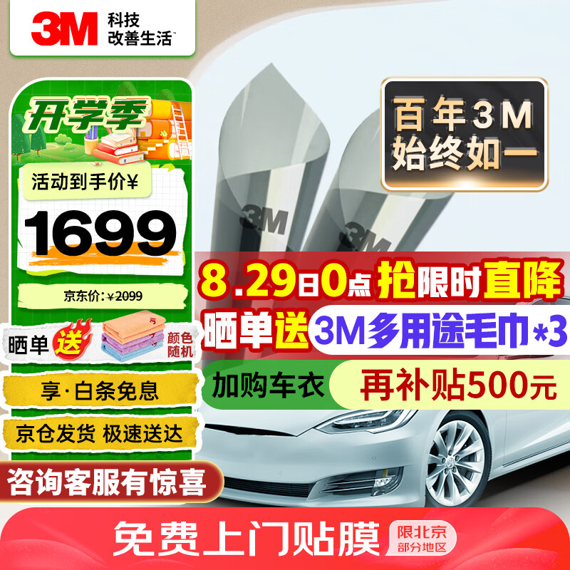 3M汽车贴膜 朗清系列 深色 特斯拉modelY/3玻璃车膜太阳隔热窗膜 包施工 国际品牌价格:2099.00元!