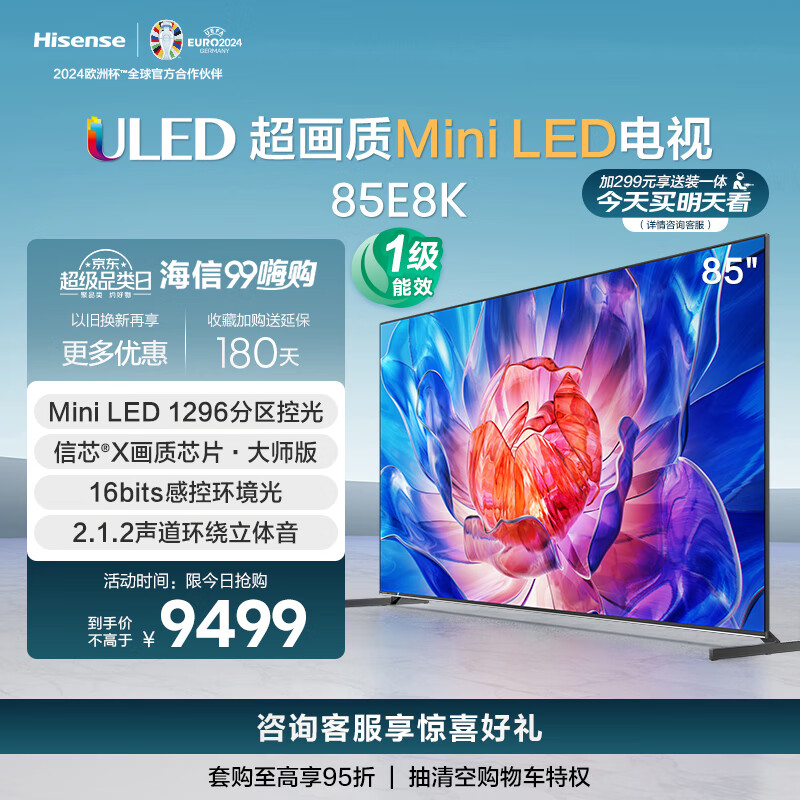 海信电视85E8K 85英寸 ULED X Mini LED 1296分区控光 4K 144Hz屏 液晶智能平板电视机价格:9499.00元!