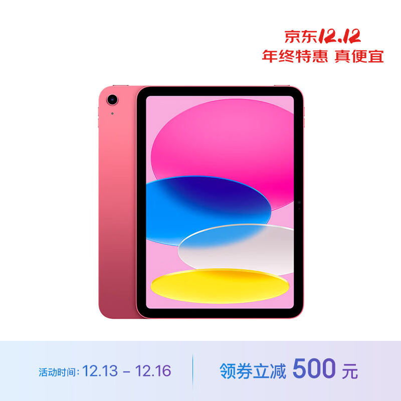 Apple【教育优惠】iPad 10.9英寸 2022款(64GB WLAN版/A14芯片/学习办公娱乐游戏/MPQ33CH/A)粉色价格:3399.00元!