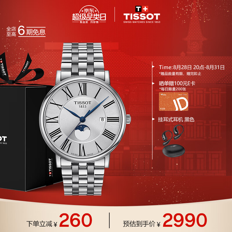 5、配货速度超快,几天就到了,带月相的新款看着是非常漂亮,给儿子买的,儿子很喜欢,就是喜欢石英的,因为石英的会比较准一些,我带的也是天梭表PRC200系列,天梭表的质量很好