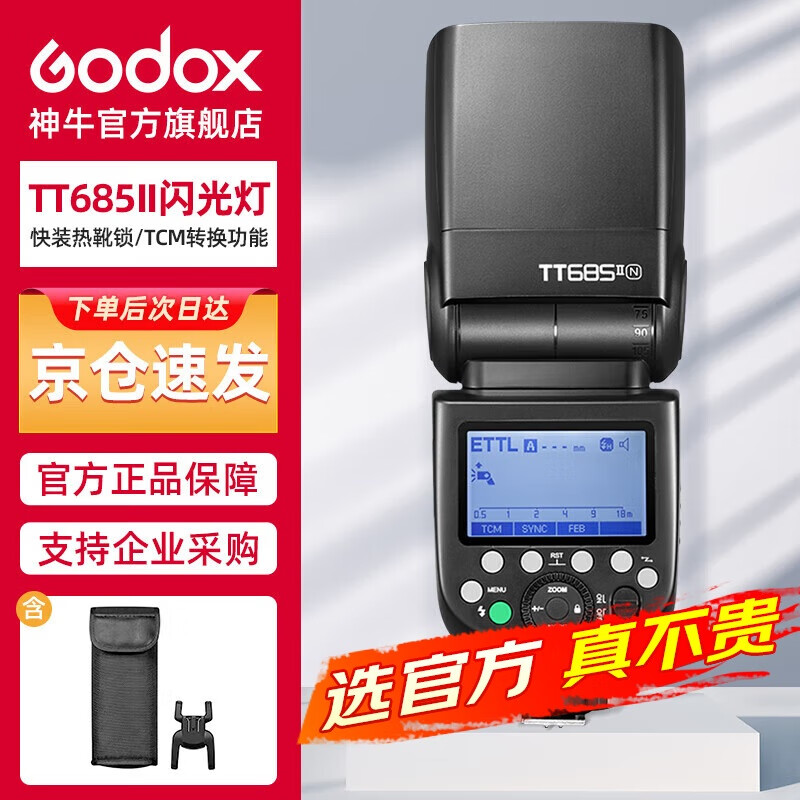 神牛TT685II二代机顶闪光灯单反微单热靴闪光灯高速同步TTL摄影外拍摄影灯户外人像模特补光摄影尼康版价格:688.00元!