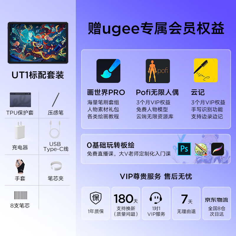 友基(UGEE)绘画平板 便携数位屏手绘屏绘图屏连电脑手写屏 护眼平板影音娱乐学习办公Pad UT1价格:3448.00元!
