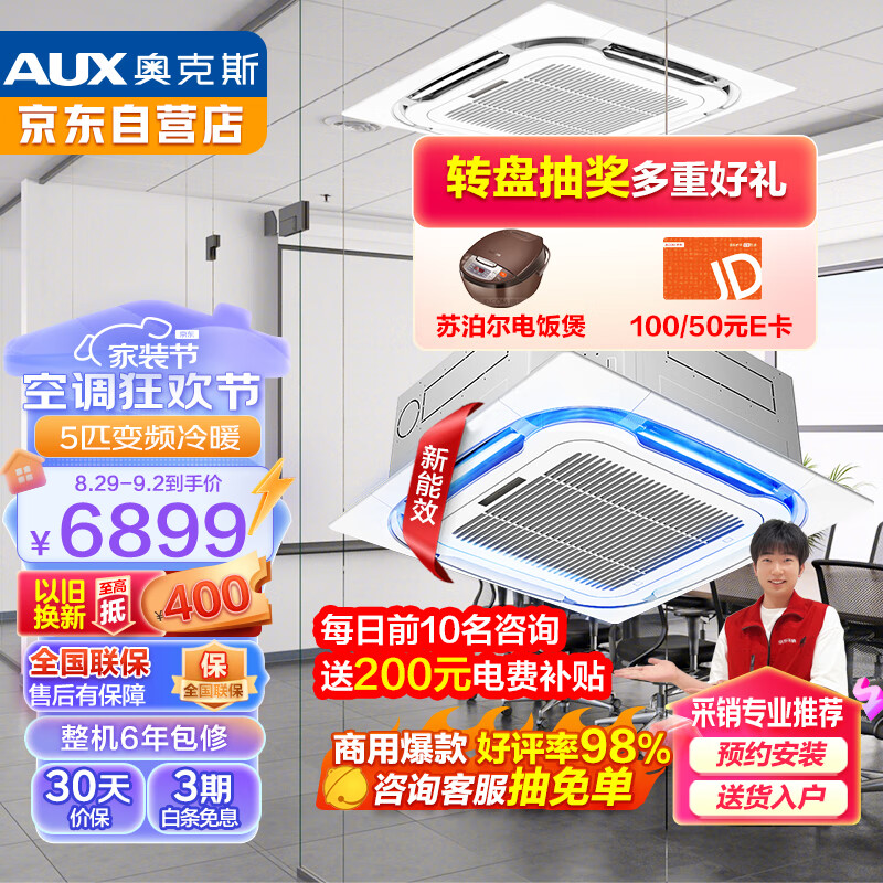 奥克斯(AUX)中央空调 天花机5匹变频冷暖吸顶空调嵌入式吊顶空调商用天井机380V KFR120QW/BPR3YDS(B3)-G 京派价格:6899.00元!