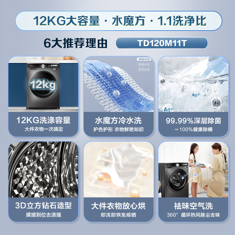 小天鹅(LittleSwan)滚筒洗衣机全自动 洗烘一体【TD120M11T】水魔方冷水洗 12公斤大容量 带烘干 1.1洗净比 以旧换新价格:3999.00元!