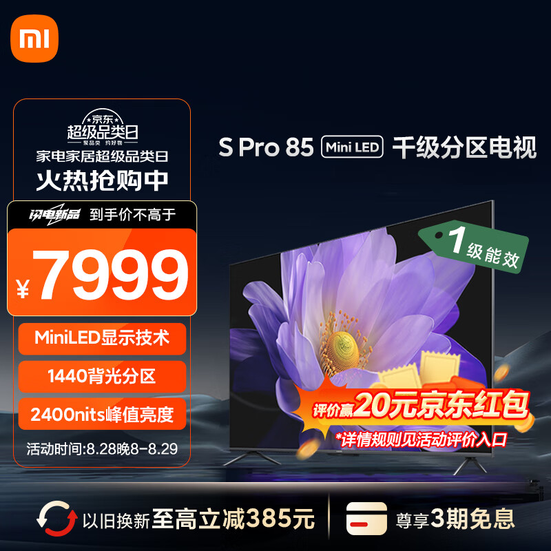 小米电视 S Pro Mini LED 85英寸 2400nits 1440分区 4GB+64GB 澎湃OS系统 电视机L85MA-SM以旧换新价格:7999.00元!