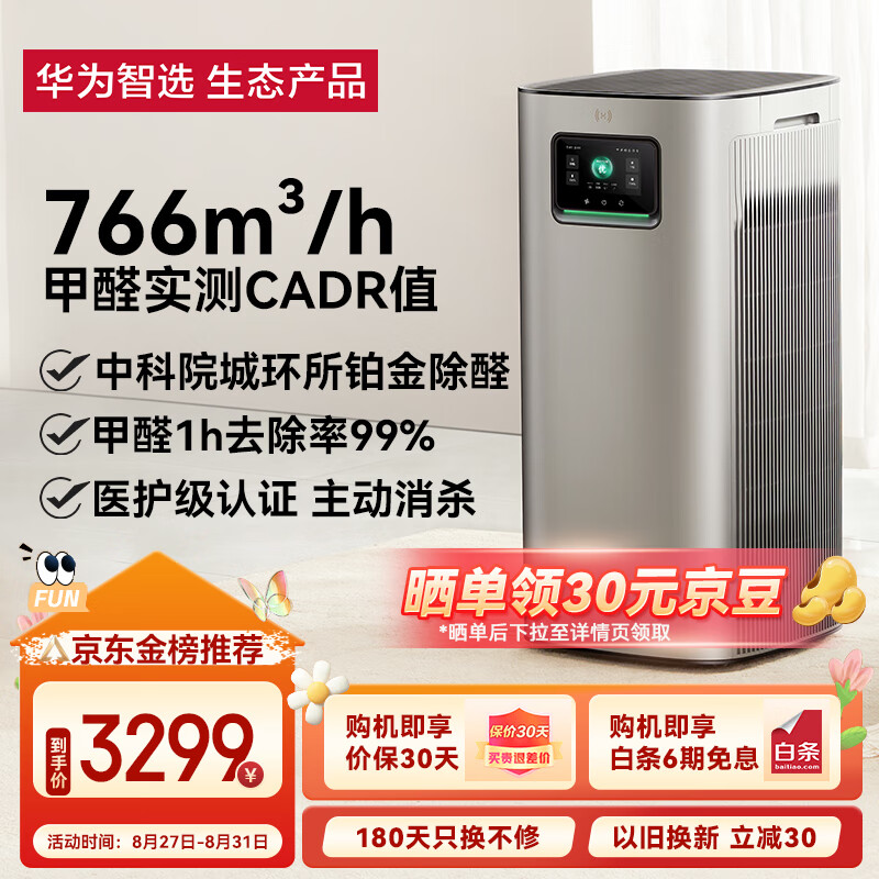 华为智选720智能空气净化器3Pro 铂金除醛 大空间疾速净化 除甲醛异味过敏原吸猫毛 主动消杀 鸿蒙智联价格:3299.00元!