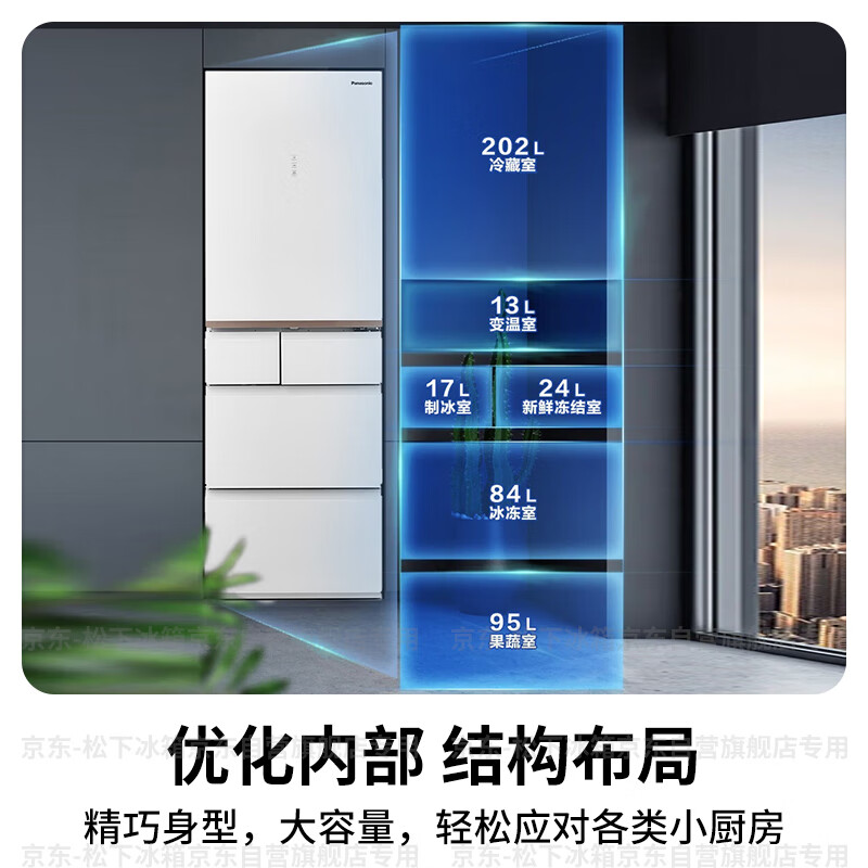 松下(Panasonic)435升家用冰箱无霜超薄冰箱 多开门 小户型 风冷变频自动制冰 NR-JE43WXC-W价格:8490.00元!