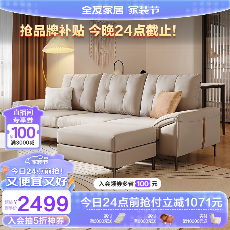 全友家居 科技布沙发客厅简约现代奶油风小户型直排布艺沙发111037价格:3570.00元!