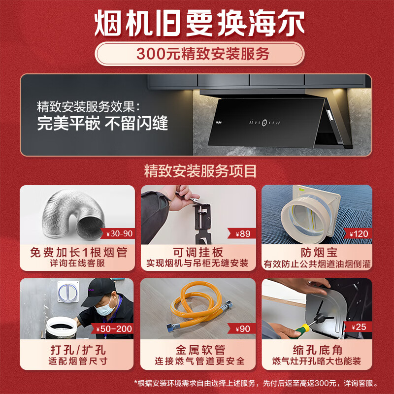 1、“海尔超薄平嵌油烟机”外形好看,款式时尚,安装以后和厨房整体效果协调。排烟效果好,手势控制,方便快捷,静音效果好,无太大噪音,清洗难度小,物流速度快。以旧换新活动购入,性价比高,适合入手。