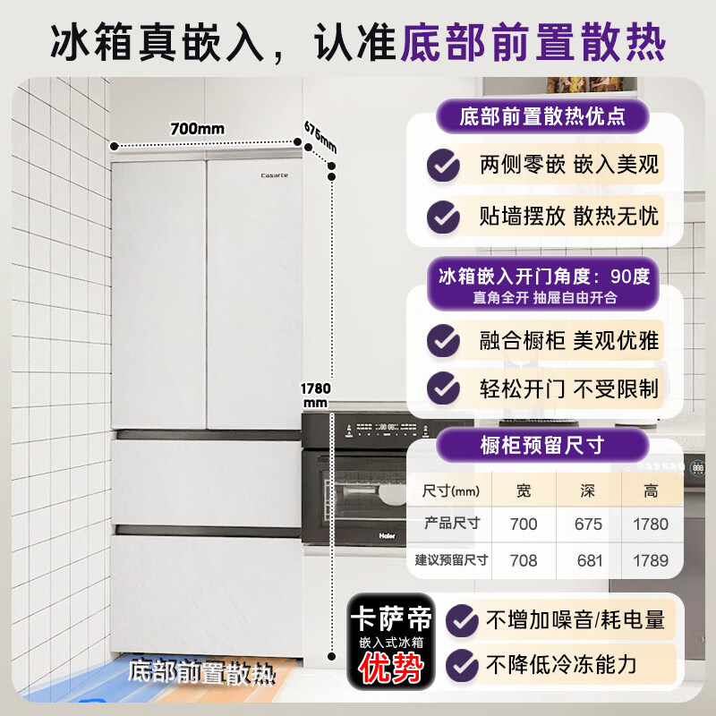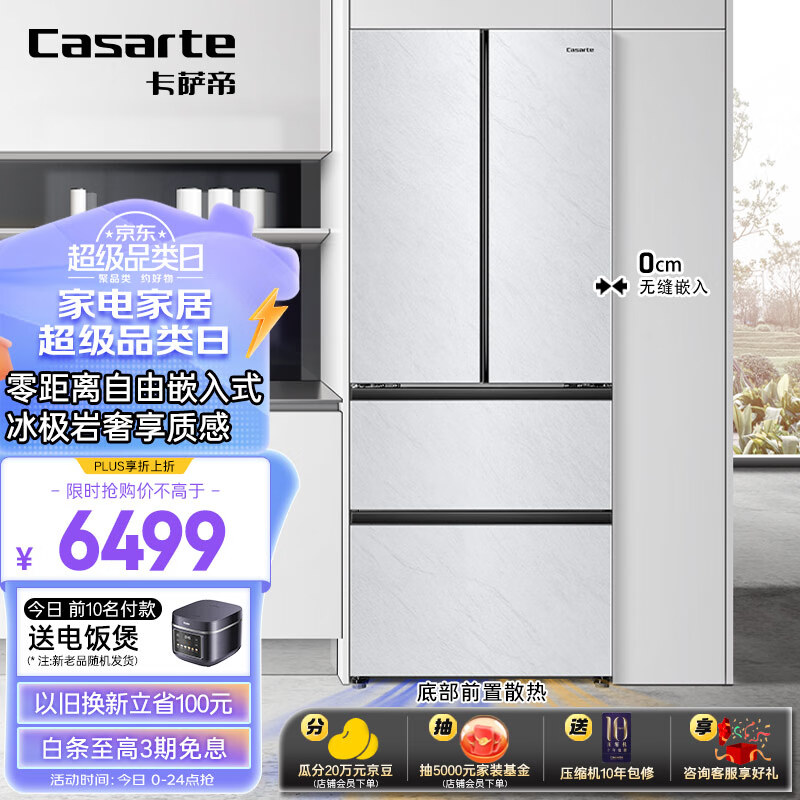 卡萨帝(Casarte)418升原石冰极岩系列超薄零嵌入式法式多门四开门白色家用一级电冰箱家用BCD-418WLCFDM4WYU1价格:6499.00元!