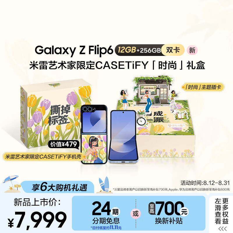 三星(SAMSUNG)Galaxy Z Flip6 AI手机 5000万像素 双卡 折叠屏手机 米雷艺术家限定「时尚」礼盒 12+256G 夏沫蓝价格:7999.00元!