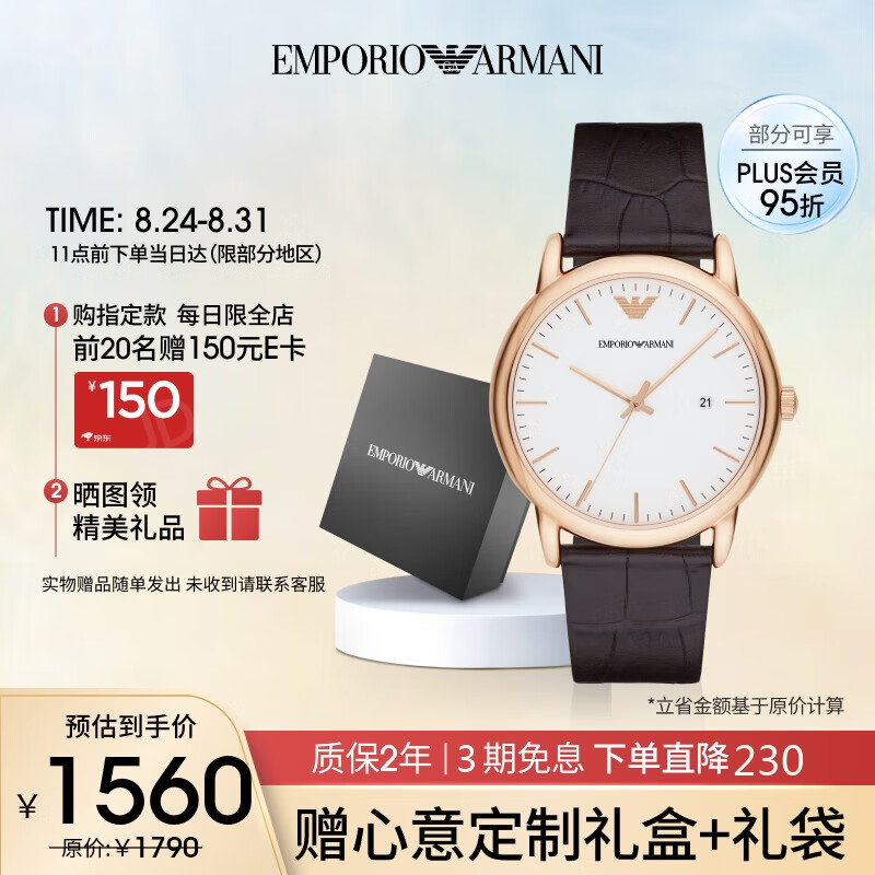 安普里奥·阿玛尼(Emporio Armani)手表男士 经典三针皮带石英美简约大气生日礼物送男友AR2502价格:1710.00元!