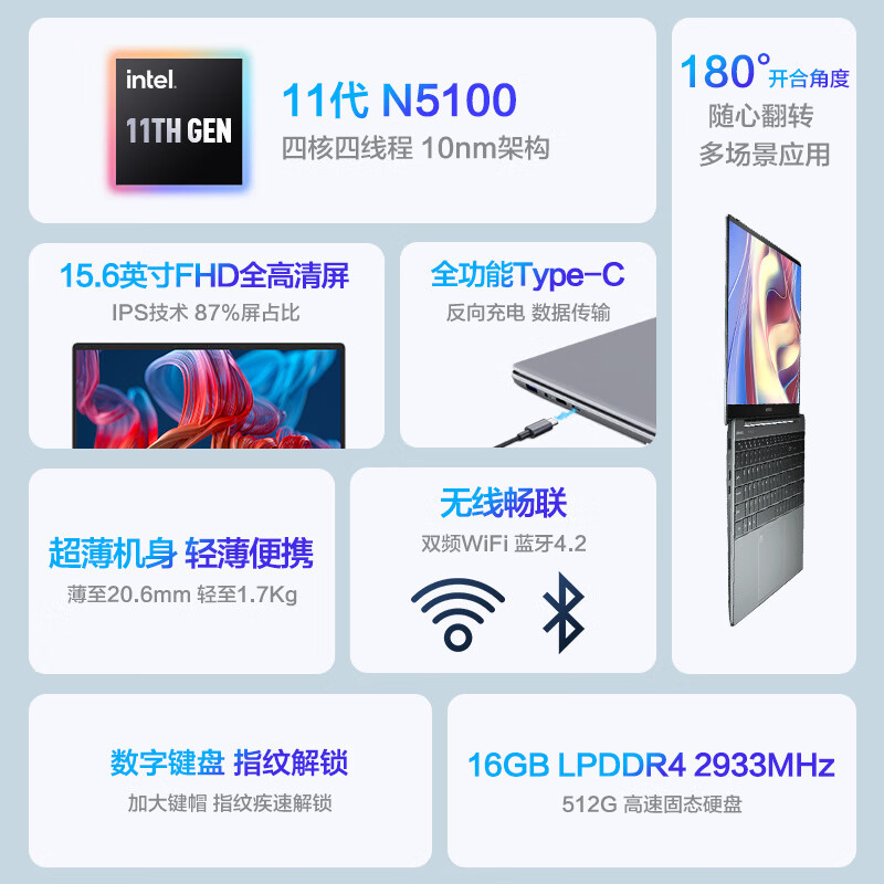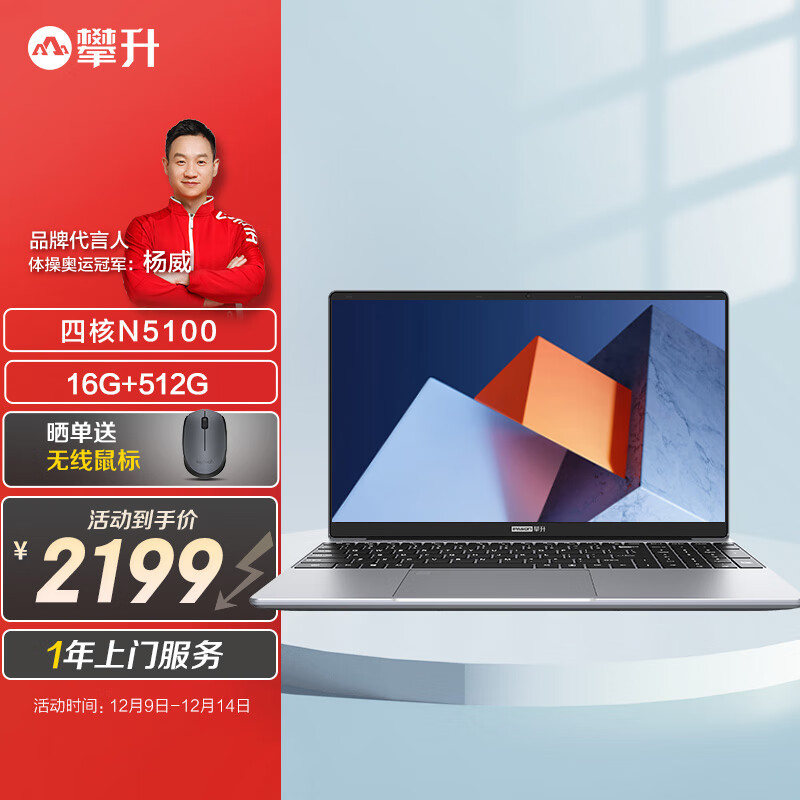 攀升【杨威推荐】2023款P2英特尔四核15.6英寸低蓝光高性能笔记本电脑游戏大学生网课设计学习办公手提轻薄本价格:2199.00元!