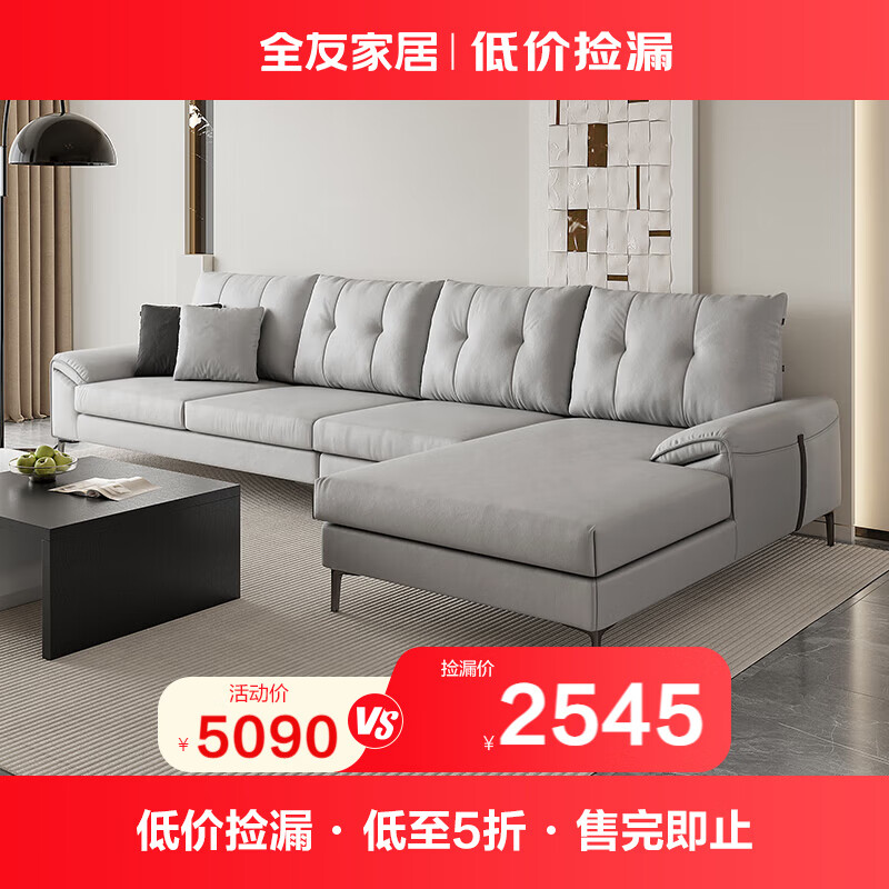 全友家居 科技布沙发客厅简约现代大户型转角贵妃位布艺沙发111037价格:5090.00元!