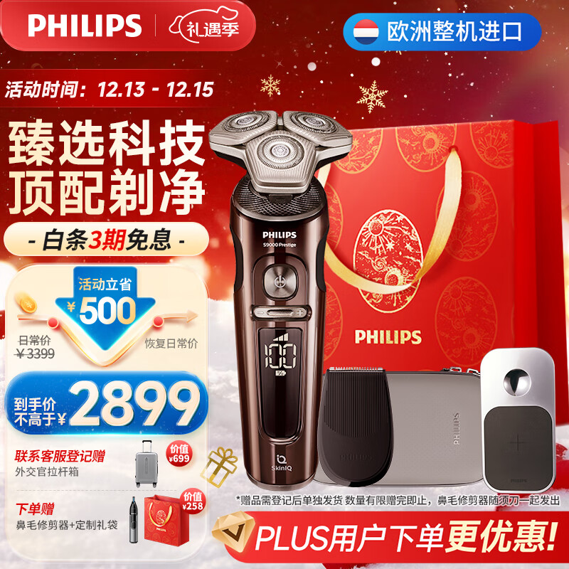飞利浦(PHILIPS)男士电动剃须刀蜂巢奢享SP9系 SkinIQ科技刮胡刀 欧洲原装进口【礼物送男友送老公】SP9870/13价格:3299.00元!