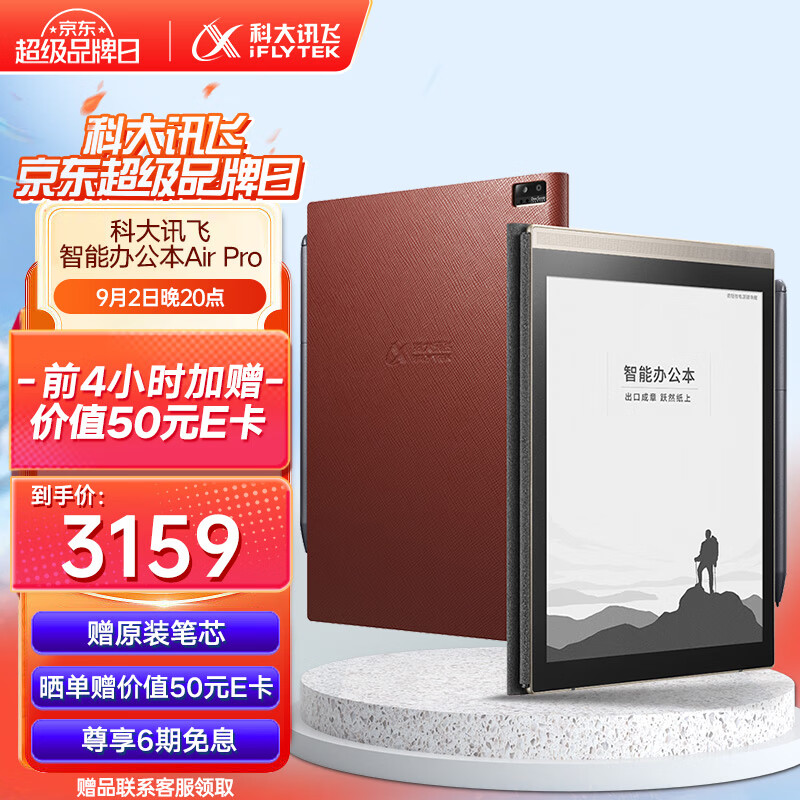 科大讯飞智能办公本Air Pro 7.8英寸电子书阅读器 墨水屏电纸书 电子笔记本 语音转文字 星光金+纹红保护套价格:3159.00元!