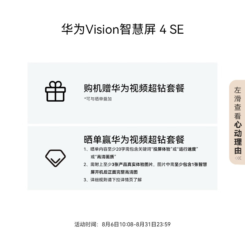 华为Vision智慧屏 4 SE 85英寸 4K超级投屏 AI摄像头 120Hz高刷超高清智能液晶游戏平板电视机HD85KUNL价格:5999.00元!