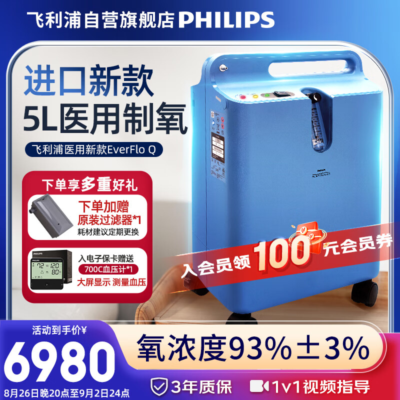 飞利浦(PHILIPS)5L升医用制氧机进口吸氧机家用老人孕妇氧气机EverFlo Q价格:7380.00元!