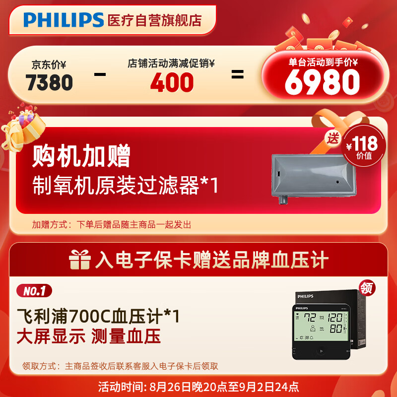 4、父亲因为住院买了飞利浦呼吸机,排二氧化碳效果很好,出院后又让我继续给他买飞利浦制氧机。昨天下的单,今天就到了,京东的效率就是高啊。原装进口的,医用级,声音小,氧气含量高,父亲很满意,赞不绝口。