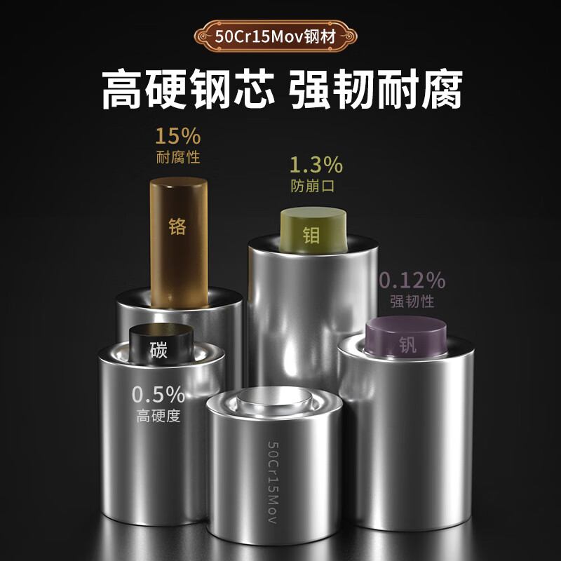 2、刀很好看,也很锋利,所有刀都是5Cr,值得选购。