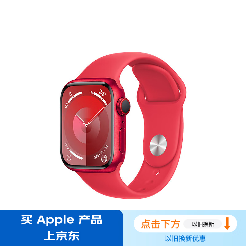 Apple/苹果 Watch Series 9 智能手表GPS+蜂窝款41毫米红色铝金属表壳红色运动型表带S/M MRY73CH/A价格:3799.00元!