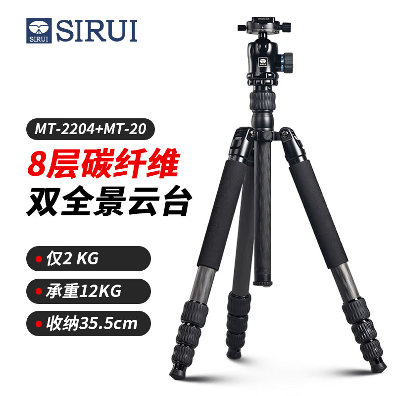 思锐(SIRUI) 三脚架 MT2204+MT20 碳纤维含云台 佳能尼康单反相机三角架 专业三脚架价格:1299.00元!