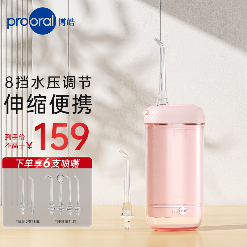 博皓(prooral)冲牙器/洗牙器/水牙线/洁牙器 便携式设计 F23 桃雾粉价格:179.00元!
