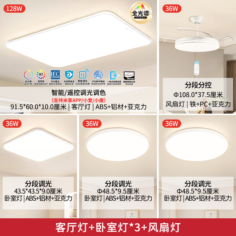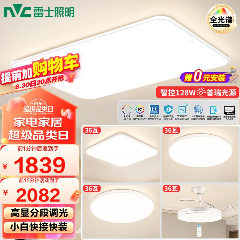 雷士(NVC)米家智能吸顶灯客厅灯led卧室风扇灯全光谱护眼小白灯白雪B舒适光价格:3059.00元!