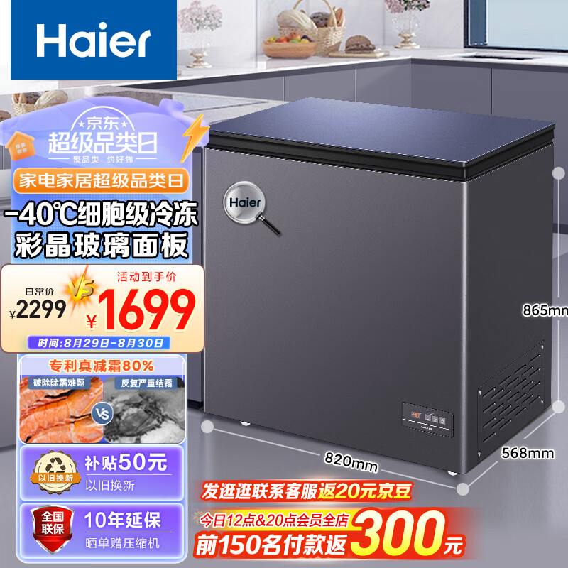 海尔(Haier)200升-40℃彩晶低霜能效小冰柜家用商用冷藏柜冷冻柜冰柜小型小冰箱小型冷柜200GHEPGD以旧换新价格:1699.00元!