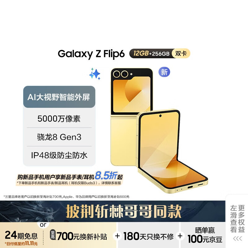 三星(SAMSUNG)Galaxy Z Flip6 AI手机 披荆斩棘哥哥同款 大视野智能外屏 双卡 折叠屏 12GB+256GB 热爱黄价格:7999.00元!