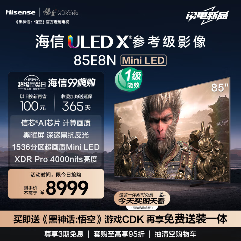 海信电视 85E8N 85英寸 黑神话悟空游戏 ULED超画质1536分区Mini LED 超薄大屏 北京以旧换新一级能效价格:8999.00元!