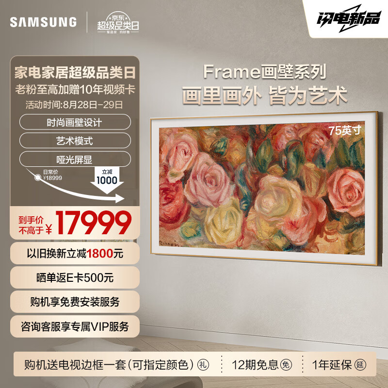 三星(SAMSUNG)75LS03D 75英寸 frame画壁艺术电视 AI电视 120Hz QLED量子点 QA75LS03DAJXXZ价格:17999.00元!