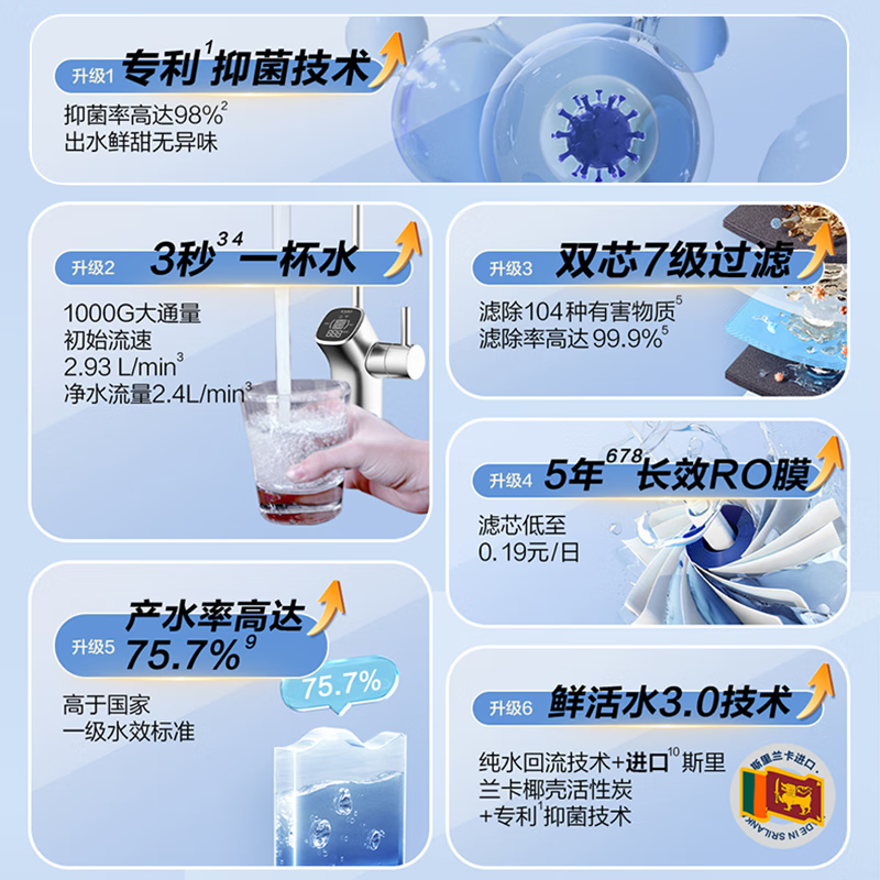 5、出水速度相当快,让我可以在短时间内获得大量洁净的水。而且,净水器的过滤效果也非常出色,可以有效地去除水中的杂质和异味,使得水质更加纯净,口感更加顺滑。