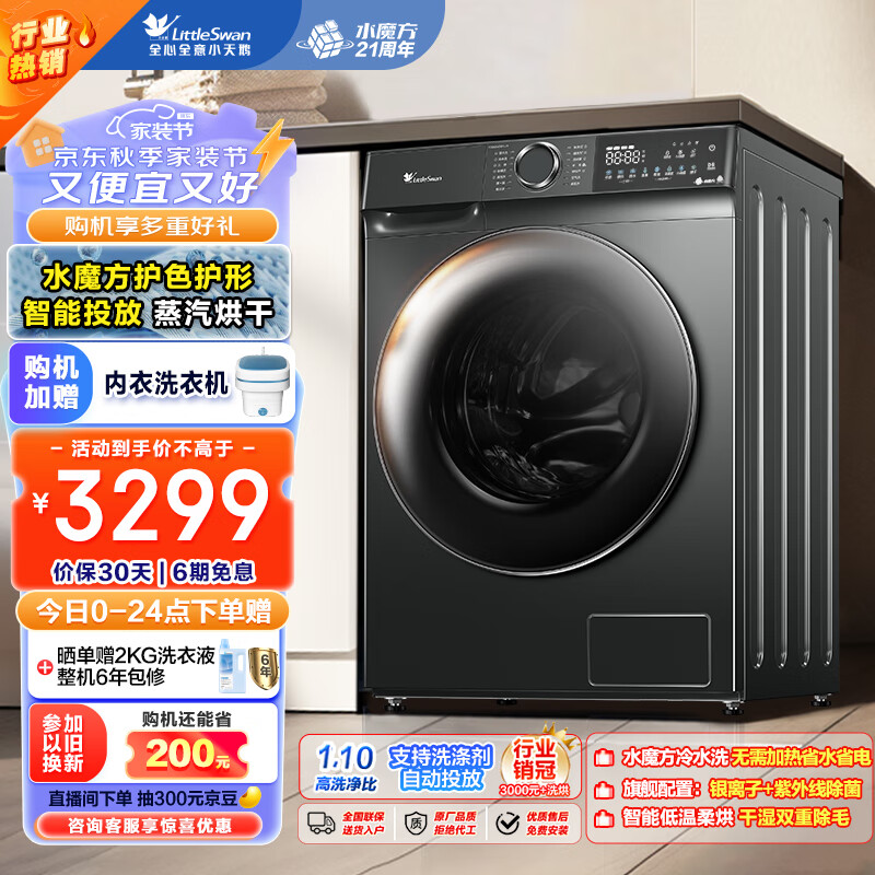 小天鹅(LittleSwan)滚筒洗衣机全自动家用 带烘干洗烘一体 水魔方【TD100V618PLUS】超薄 10公斤 以旧换新 排名前十名价格:3299.00元!