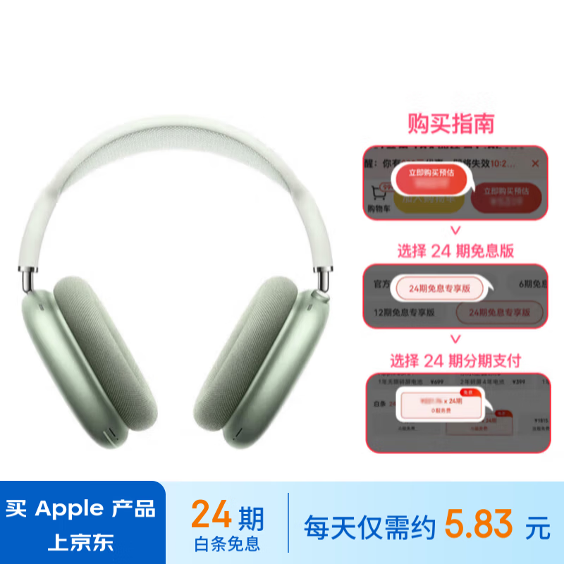 Apple/苹果【24期免息】AirPods Max-绿色 无线蓝牙耳机 主动降噪 头戴式 适用iPhone/iPad/Watch/Mac价格:4199.00元!