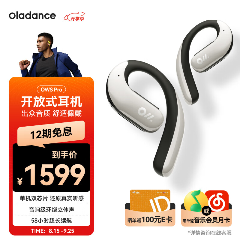 OladanceOWS Pro 全开放式耳机(含充电仓)无线蓝牙不入耳防漏音运动耳机超长续航 白价格:1599.00元!