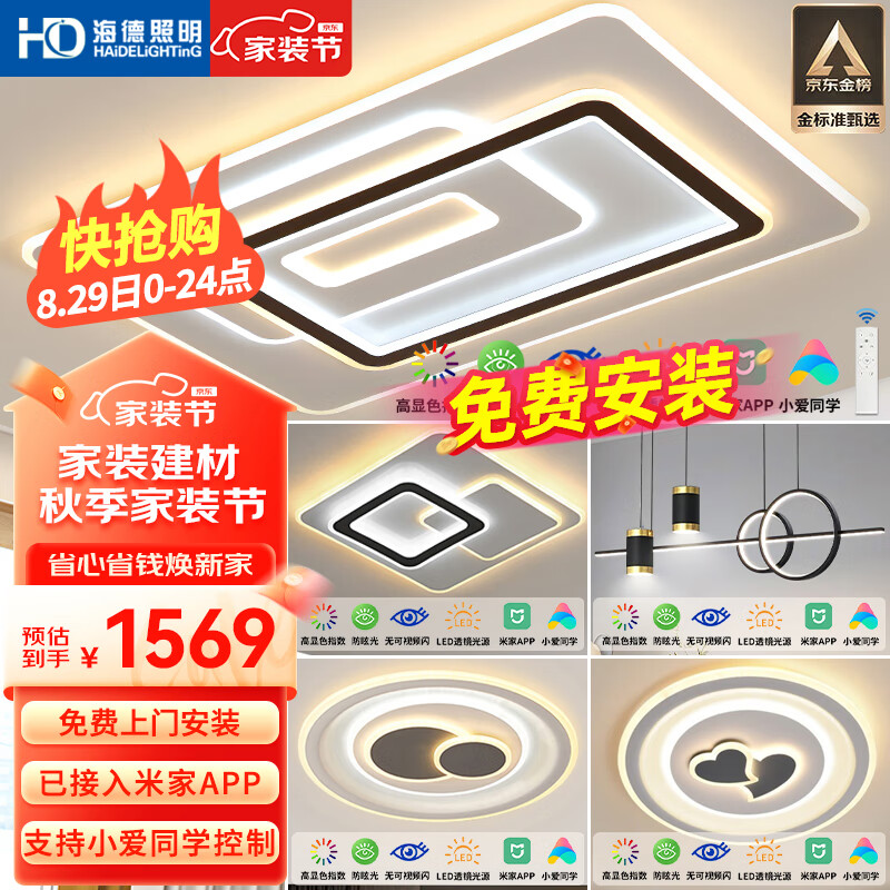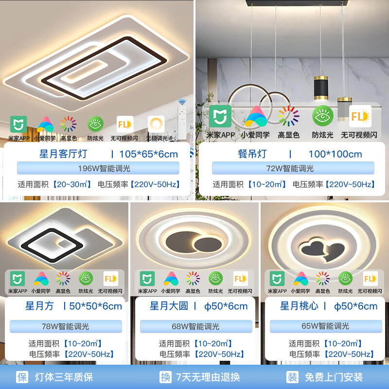HD智能吸顶灯 led大客厅灯卧室餐厅全屋简约米家智能灯具大全套餐A价格:2199.00元!