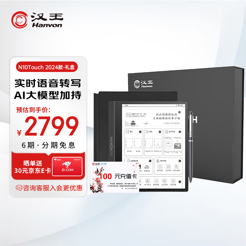 汉王(Hanvon)N10 Touch 2024 礼盒版 智能办公本10.3英寸电纸书阅读器墨水屏电纸书电子书笔记本手写平板价格:2799.00元!