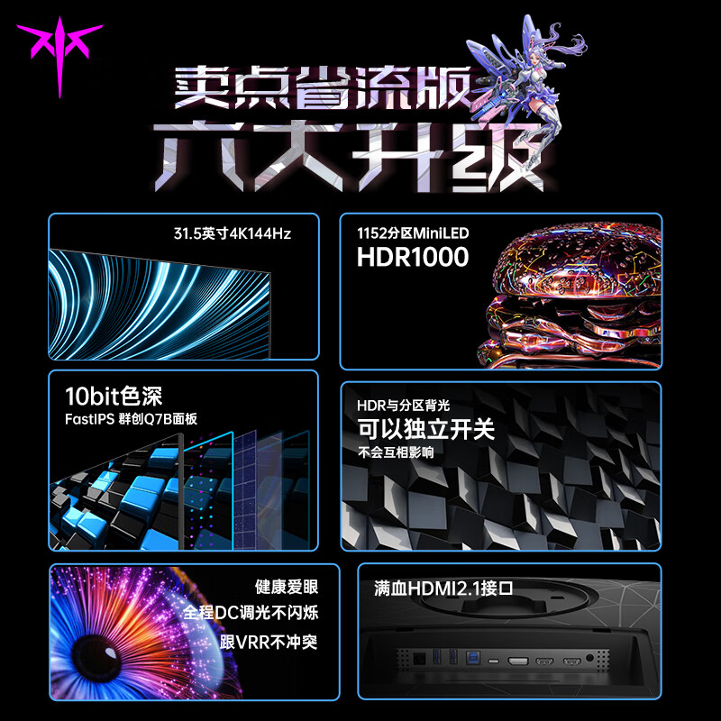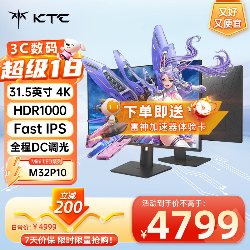 KTC 31.5英寸 4K144Hz MiniLED 1ms IPS 10bit 低蓝光 4608灯珠 旋转升降 HDR1000电脑显示器 M32P10价格:5299.00元!