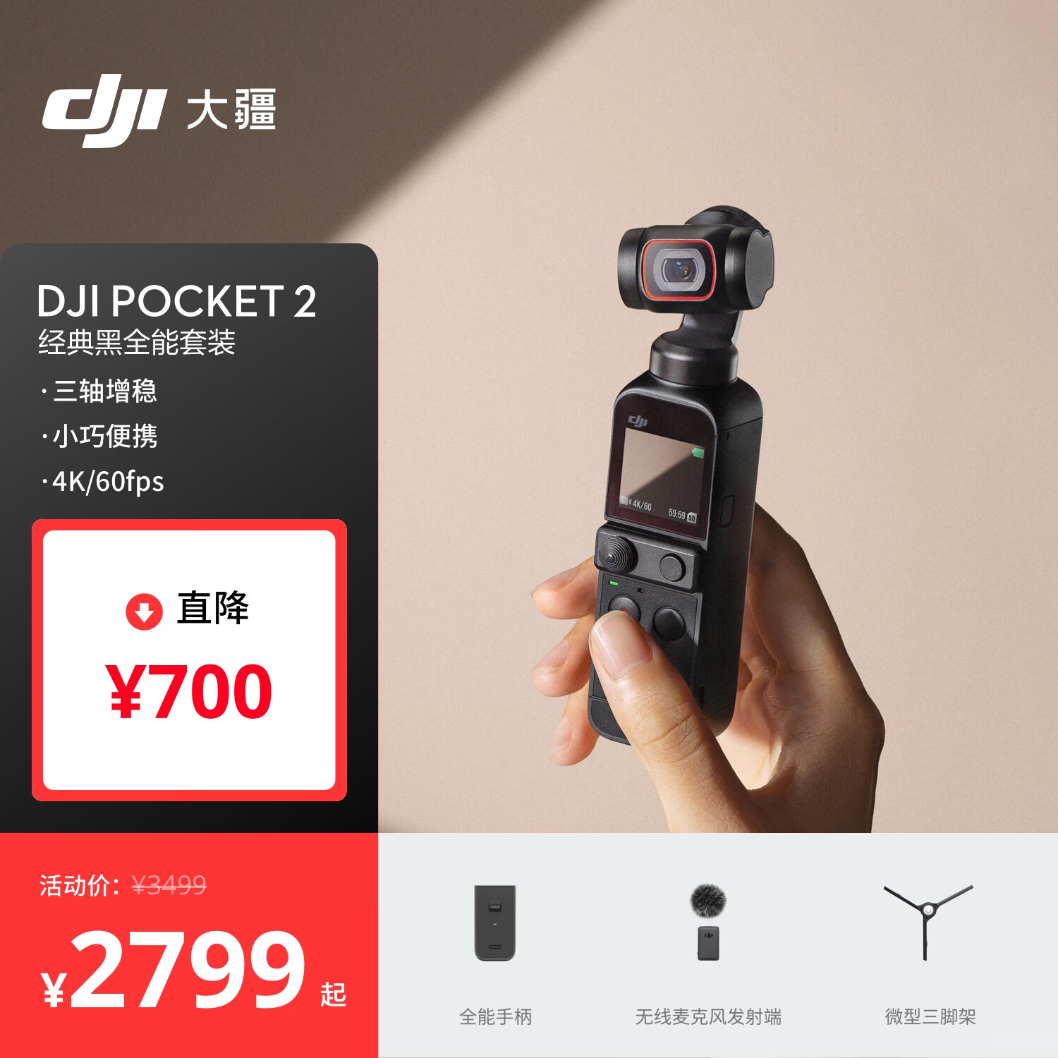 大疆 DJI Pocket 2 全能套装 灵眸口袋云台相机 小型防抖运动相机vlog全景相机+随心换1年版(虚拟卡)价格:2998.00元!
