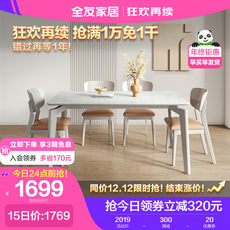 全友家居 餐桌现代简约岩板餐桌椅组合亮光台面餐厅长方形桌子DW1120价格:2019.00元!