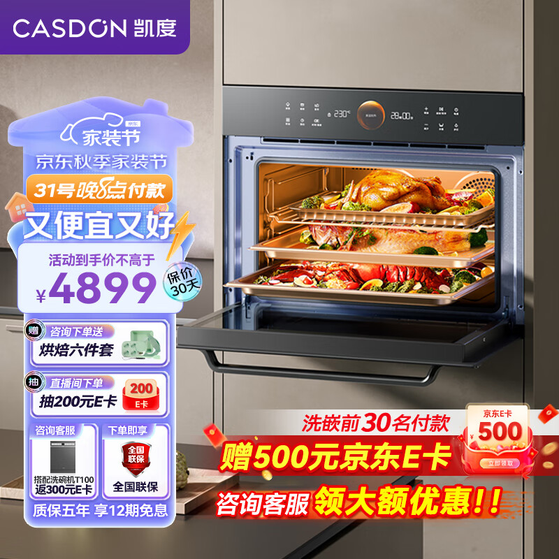 凯度(CASDON)60L蒸烤箱一体机嵌入式 双热风 多功能蒸箱烤箱 蒸烤炸炖四合一体SR6028FE22-TDPro二代价格:4899.00元!