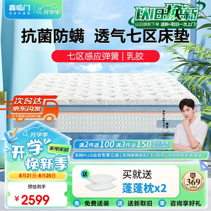 喜临门进口高纯乳胶七区独袋弹簧床垫 黄麻床垫 软硬两用床垫 漾1.5x2米价格:2599.00元!