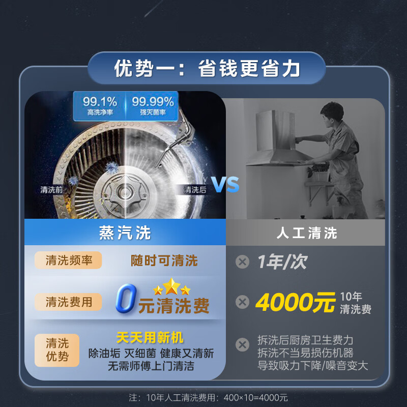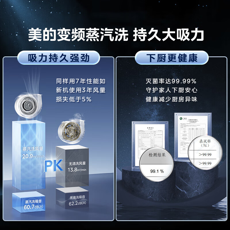 4、油烟机整体非常大气上档次,发货及时,安装得刚刚好,一键脉冲水洗非常方便,顶侧双吸非常大吸力不用担心家里油烟了,家里人都很满意,有机会还会再回购的。