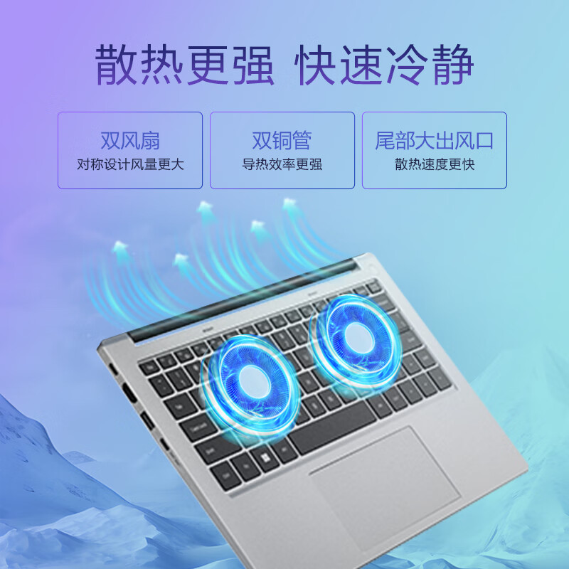 2、之前的宏碁电脑用了9年了,实在是扛不住了,那个时候的配置i5-4200u用到现在是真的拖不起了太卡了,后面直接上京东又继续购入宏碁这款品牌的超薄办公本没想到这么好用,A面金属质感外加自带网口并且散热通风做的很好,有三处风口一处底部吸风,折叠处有两处出风口,非常合理。程序响应速度非常快速和以前的看电脑根本就是两个时代的产物,下次游戏本可以考虑宏碁的,这次非常满意。
