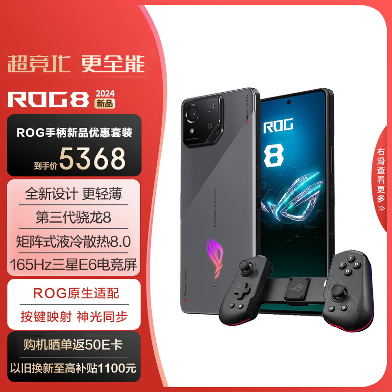 ROG8 AI游戏手机 12+256 风暴灰 骁龙8Gen3 矩阵式液冷散热8.0 165Hz高刷【驭风手柄套装版】价格:5368.00元!